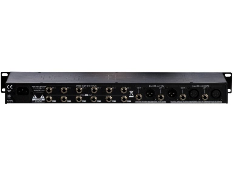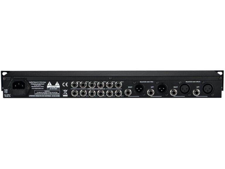 Préampli casque 6 canaux stéréo, avec un Auxiliaire par canal avec balance réglable entre signal principal et AUX.